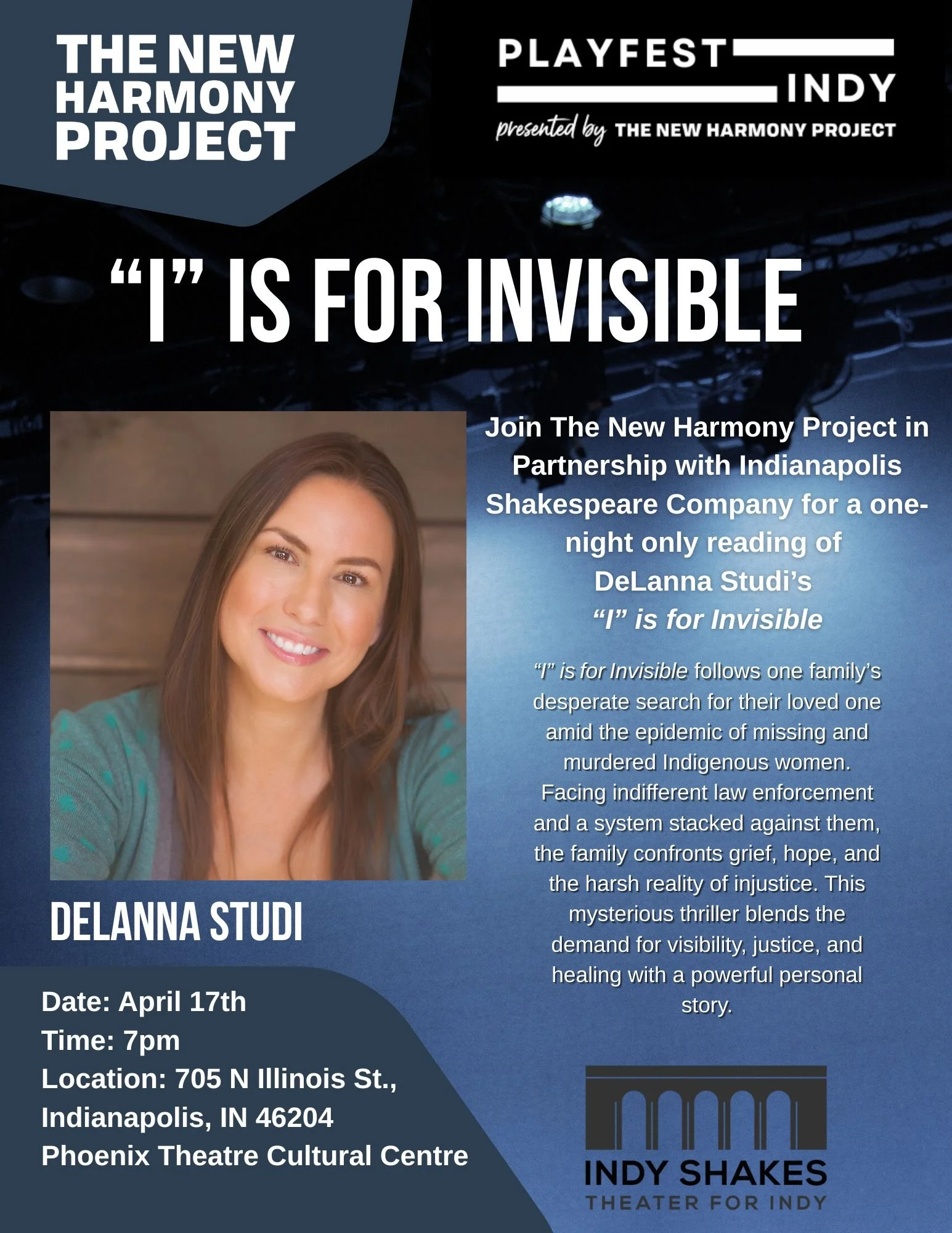 The final reading of the 2025-2026 PlayFest Indy season will be held on April 17 at 7pm. The reading is currently sold out, but if you’re interested in joining us, you’re welcome to come to the theatre and if seats become available, you’ll be more than welcome to join us! See details below.